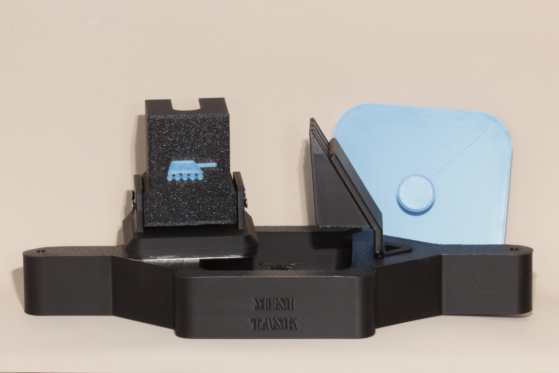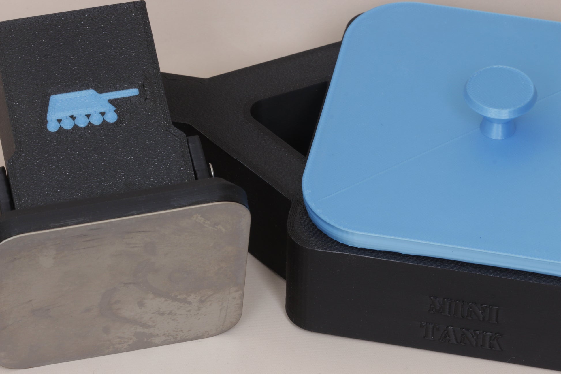 O Kit MiniTank é produzido em PETG de alta resistência, impresso em tecnologia de filamento com INFILL reforçado para maior durabilidade.